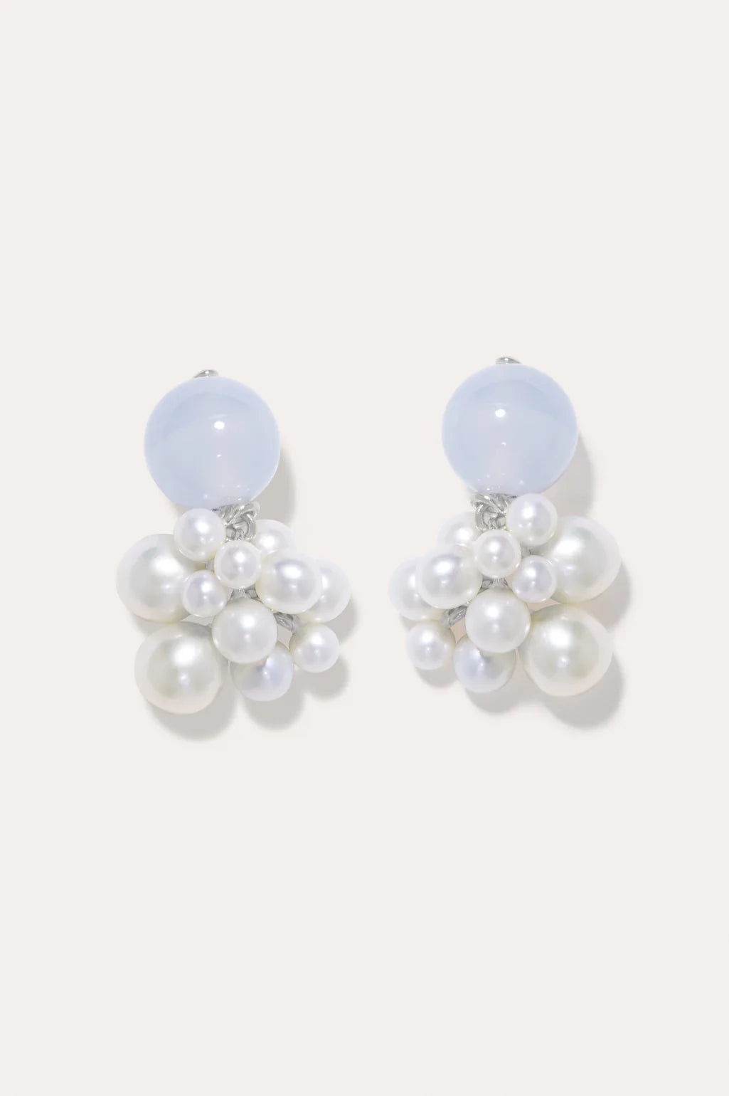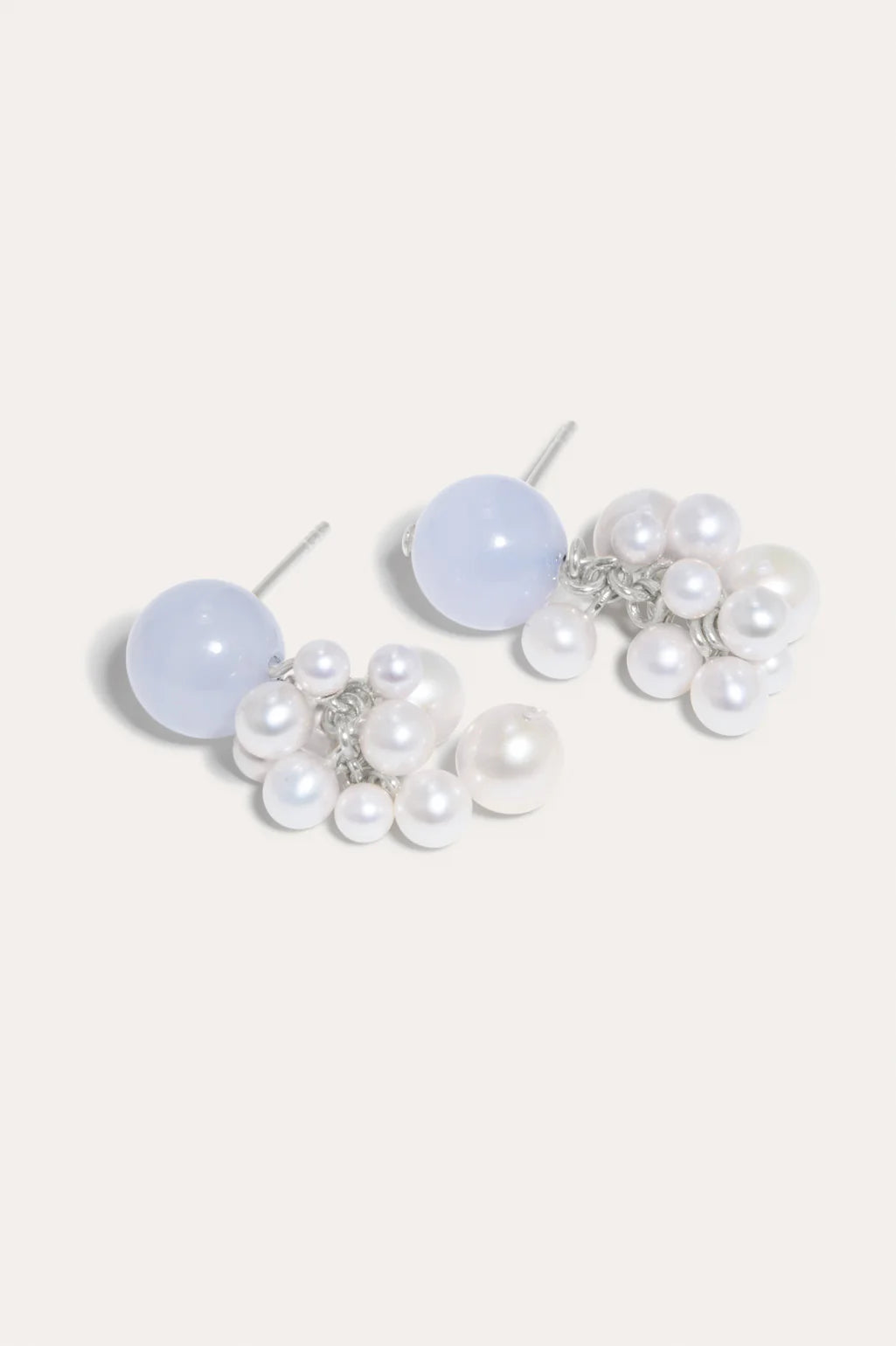 Exquisitely crafted from recycled sterling silver, these sculptural earrings pair luminous freshwater pearls with polished blue lace agates, embodying Completedworks' commitment to sustainable luxury and modern elegance.